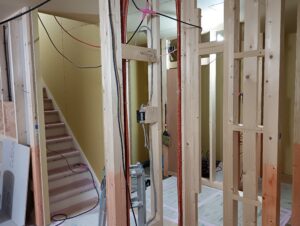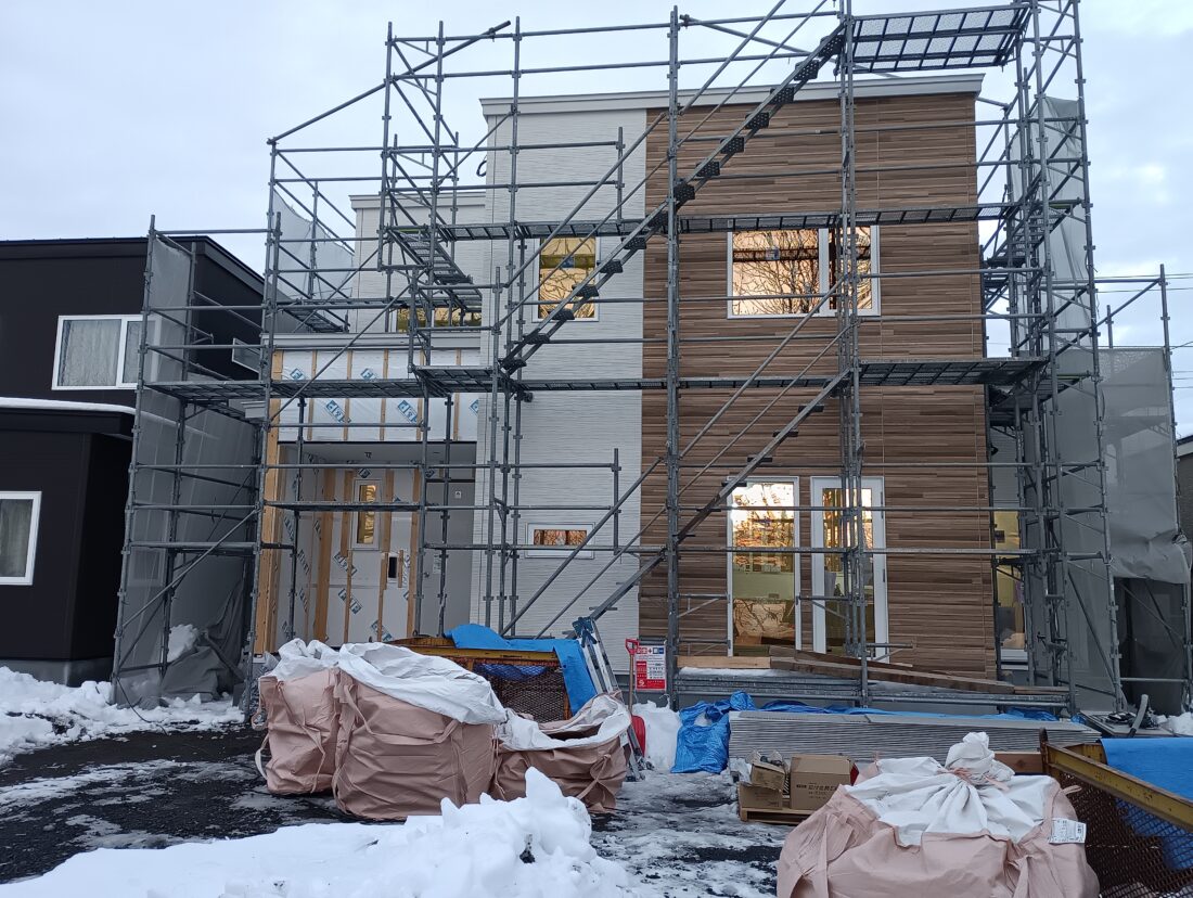 外壁張りが進み、内部では間仕切壁の造作が始まりました。