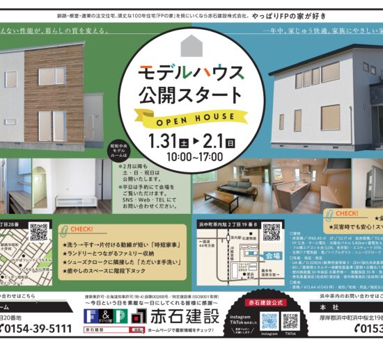 6月14日(土)から浜中町茶内でモデルハウスのロングラン完成見学会を行います。
